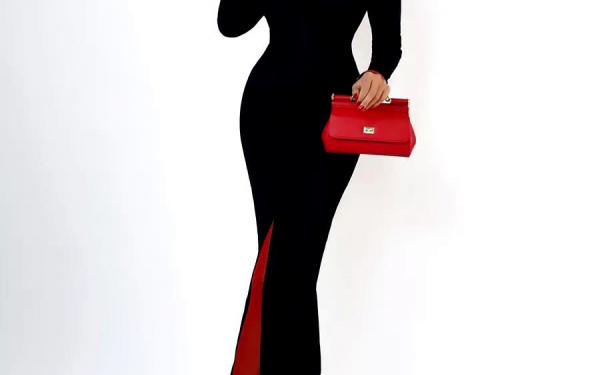 » Элегантное черное платье миди с разрезом