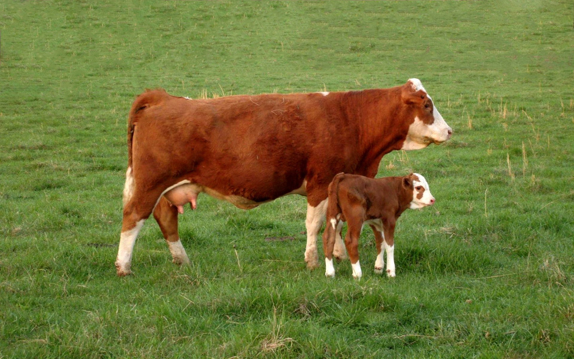 Картинки » Животные » Коровы » Корова и теленок на поляне