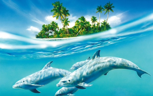 » Дельфины у тропического острова