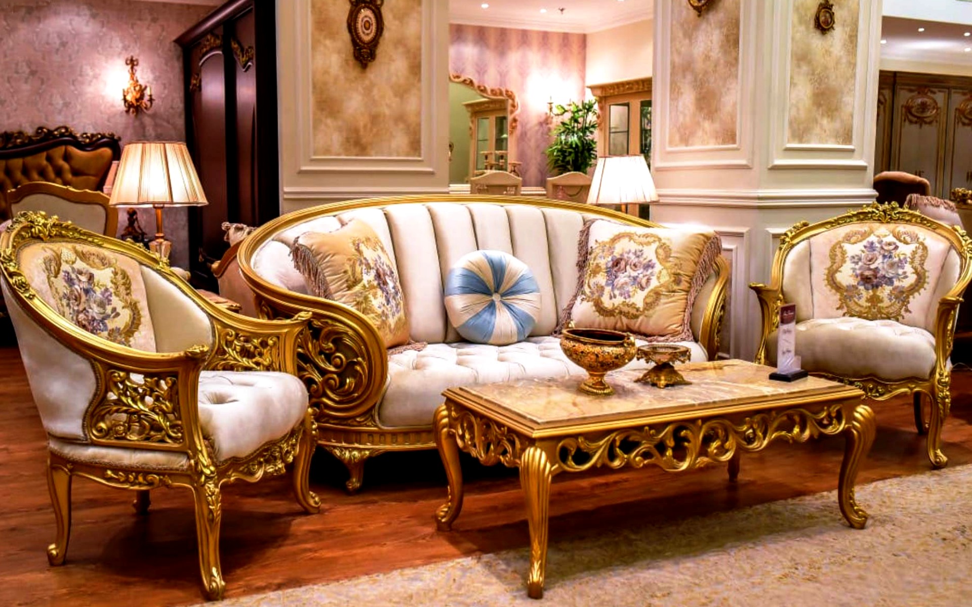 Гостиная с позолоченной мебелью