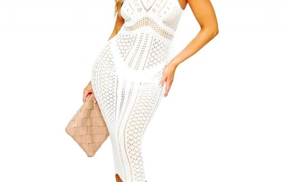 Белое вязаное пляжное платье