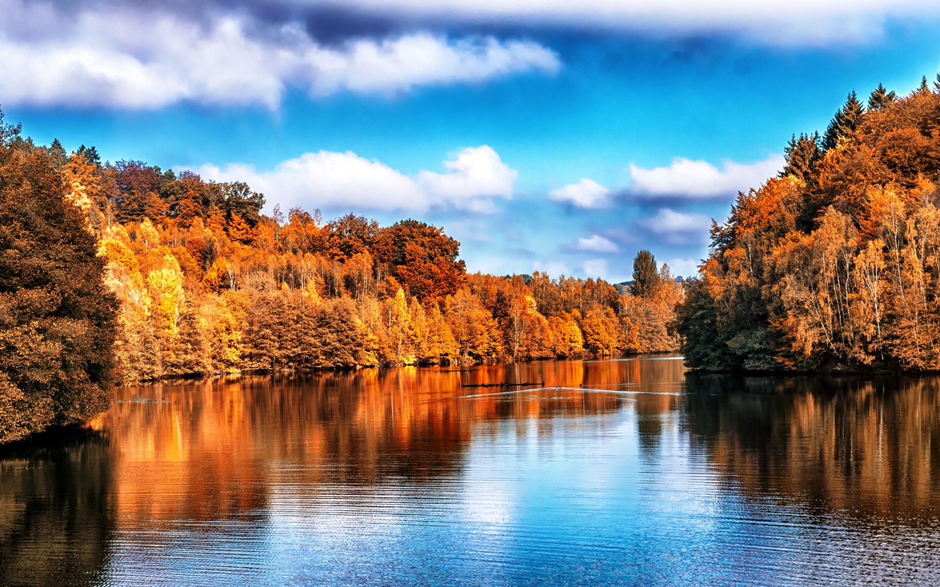 Картинки » Природа » Осень » Река лес облака осень