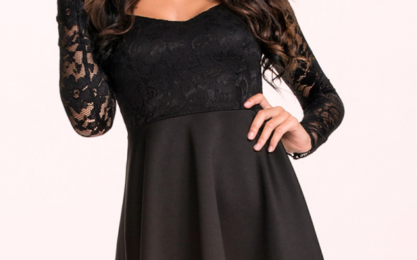 Короткое черное платье с кружевными рукавами