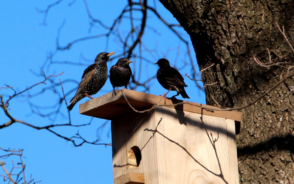 Скворцы на крыше дома своего