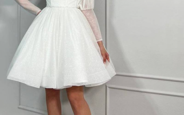 Свадебное платье мини из глиттера со съемными рукавами
