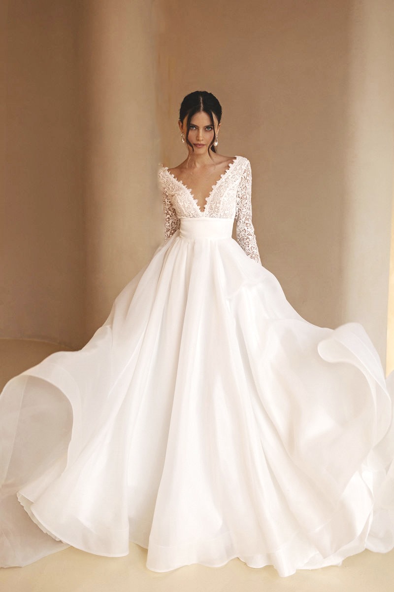 » Свадебное платье с ажурным лифом и длинными кружевными рукавами