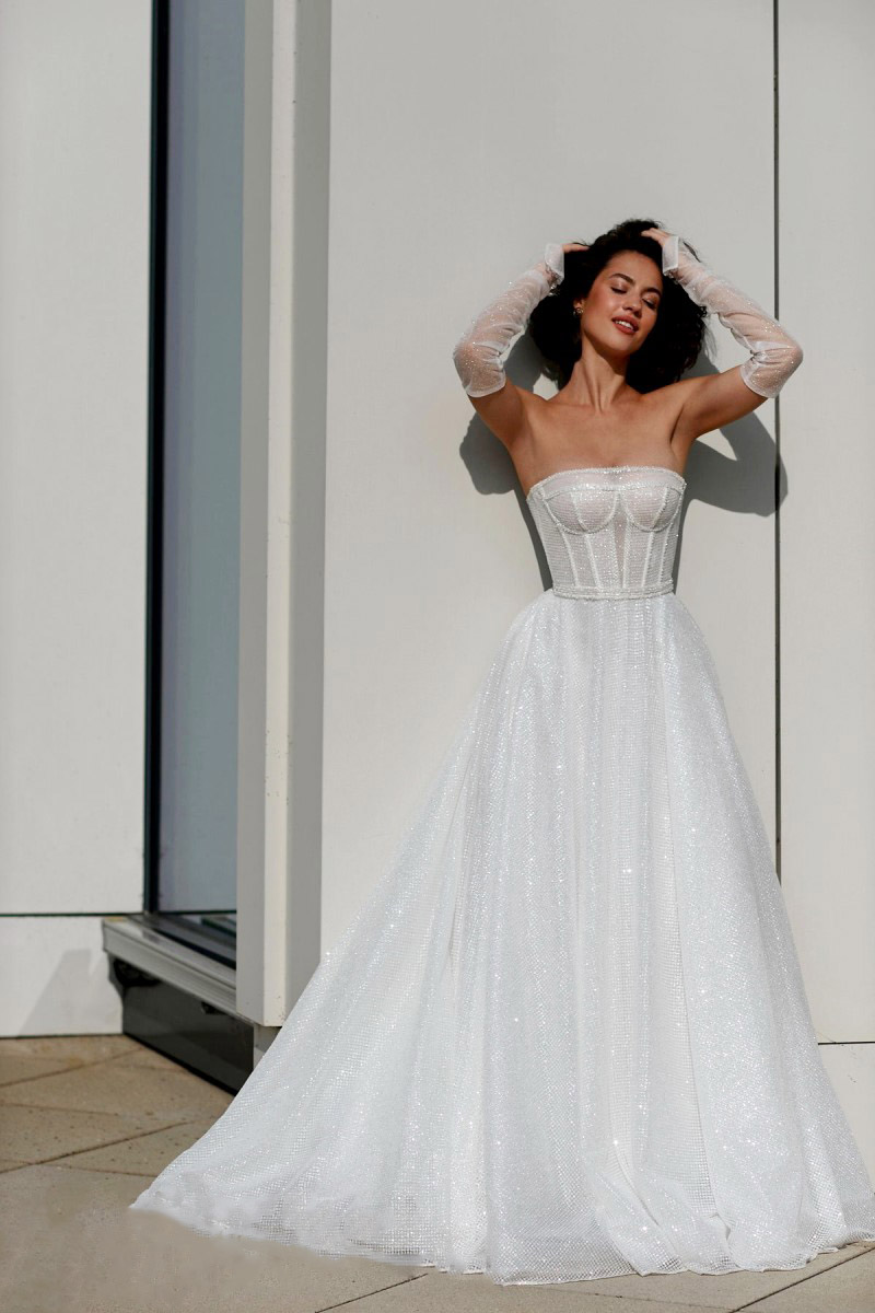 Свадебное платье с декольте корсетом и пышной юбкой