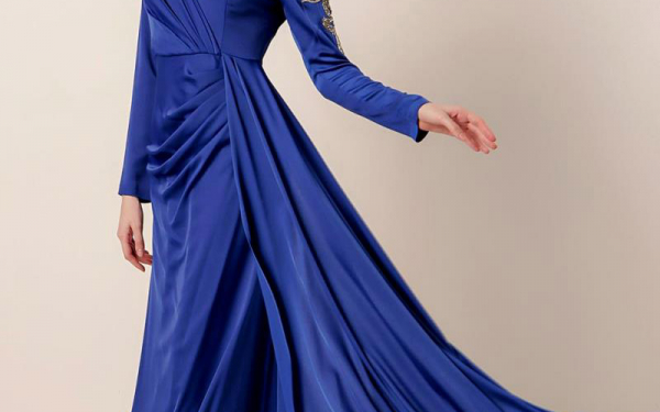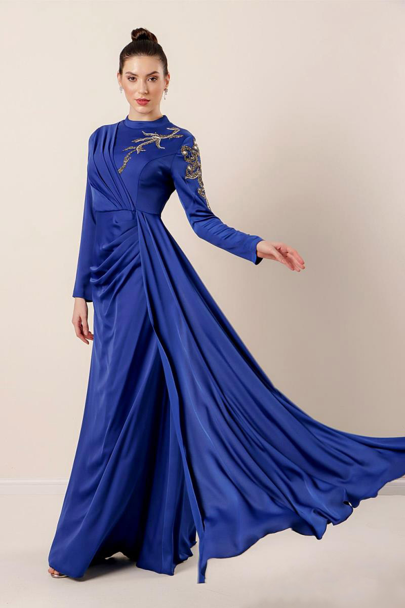 Синее вечернее платье из креп-атласа