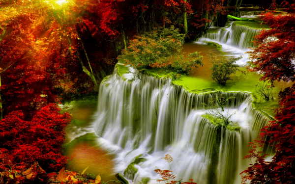 Картинки » Природа » Водопады » Каскадный водопад в осеннем лесу