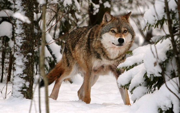 Картинки » Животные » Волки » Волк в зимнем лесу